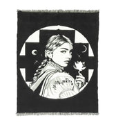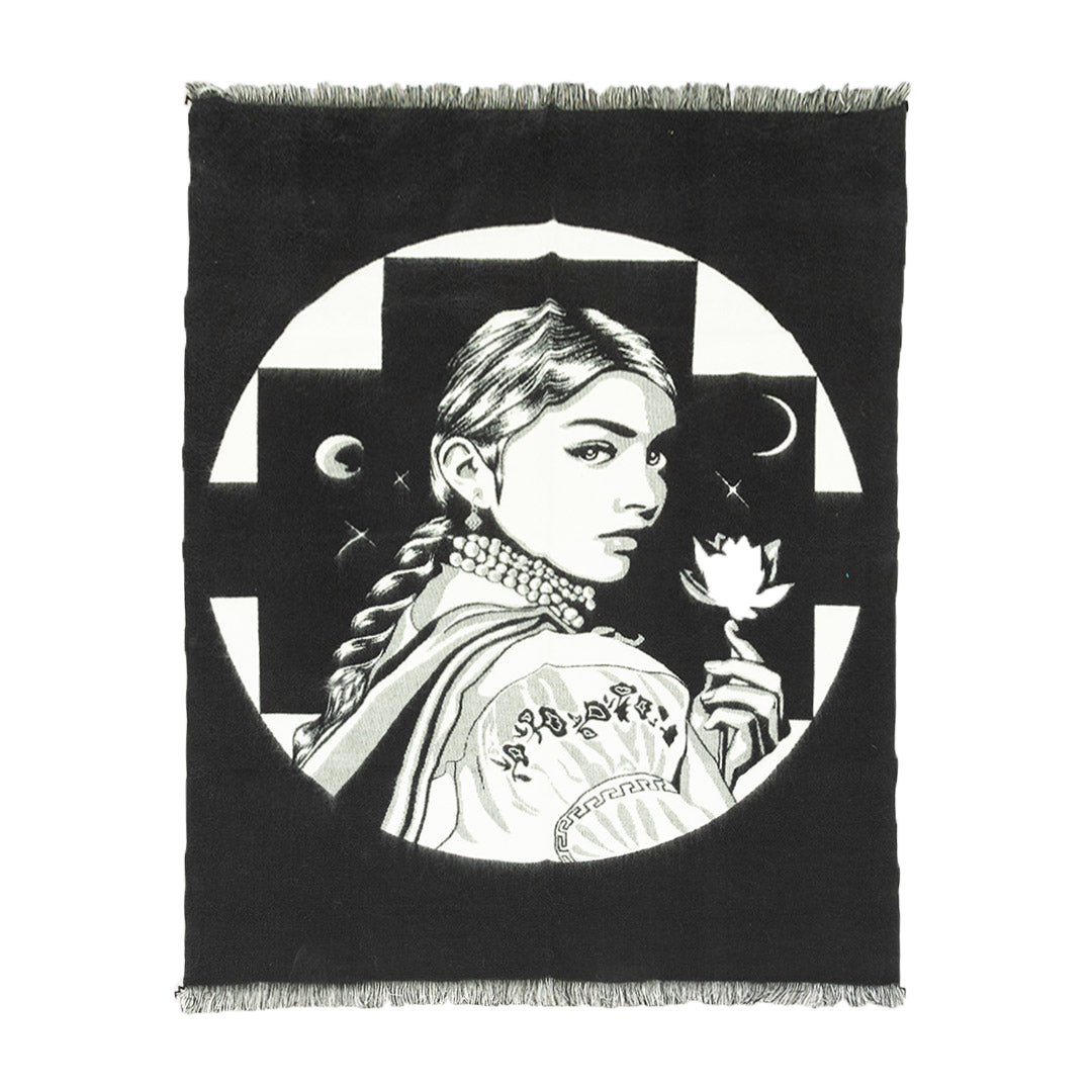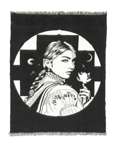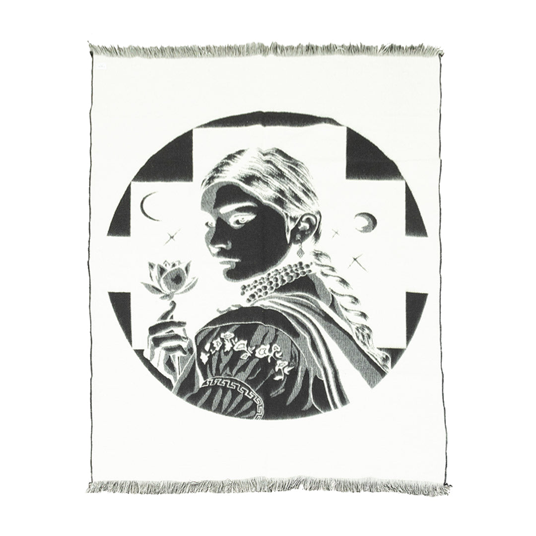 Manta de viaje en Alpaca 50% y Orlón 50%. Diseño inspirado en los relieves de las faldas y cumbre de nuestro volcán Antisana.