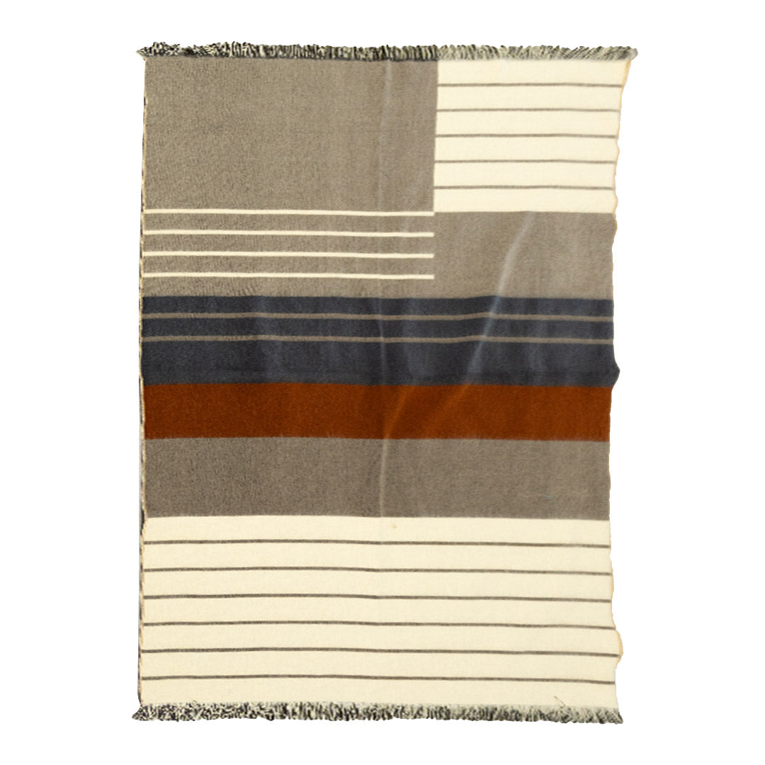 Manta de viaje en Alpaca 50% y Orlón 50%. Diseño inspirado en los relieves de las faldas y cumbre de nuestro volcán Antisana.